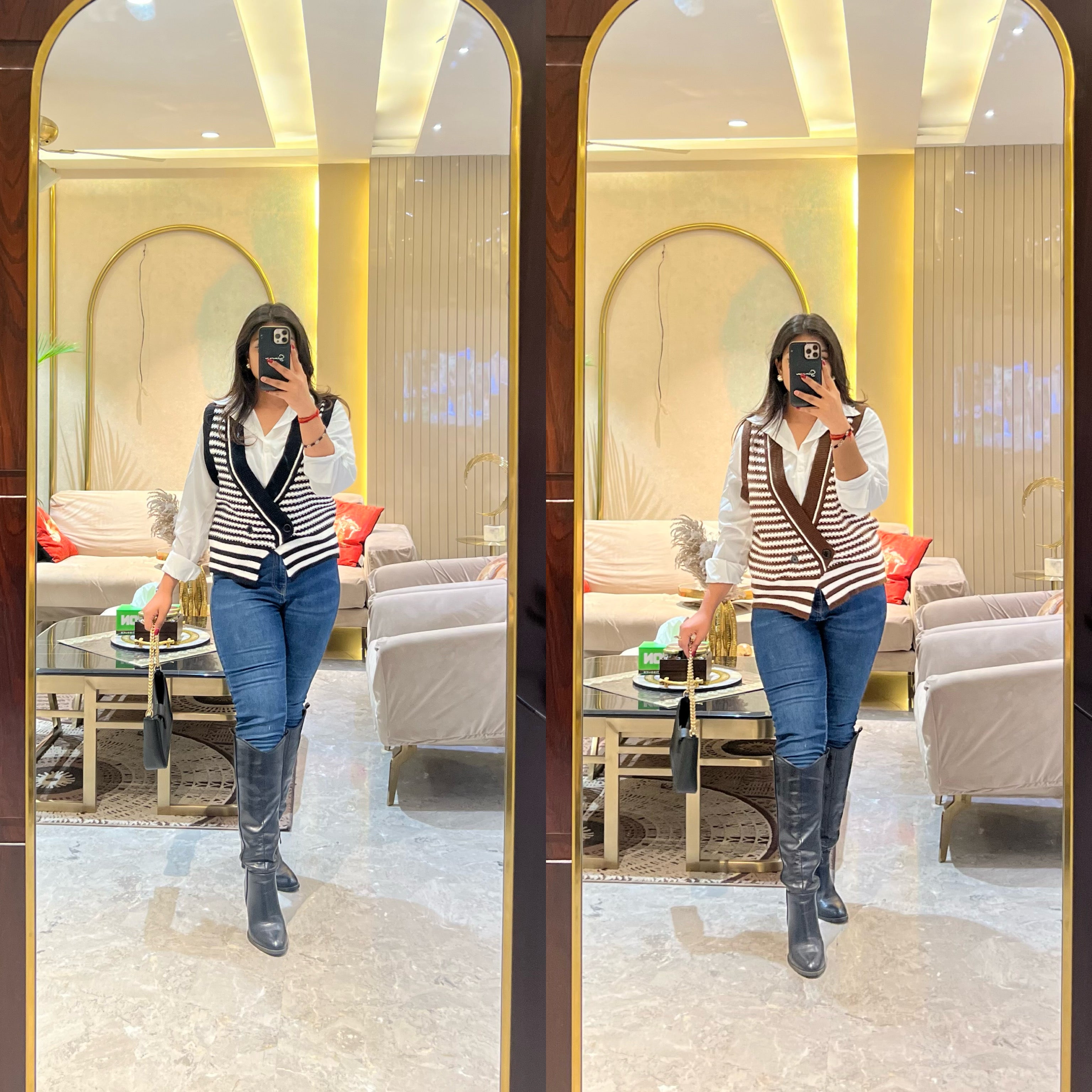 Fabric - Cotton Blend Shirt With Kniited Vest !