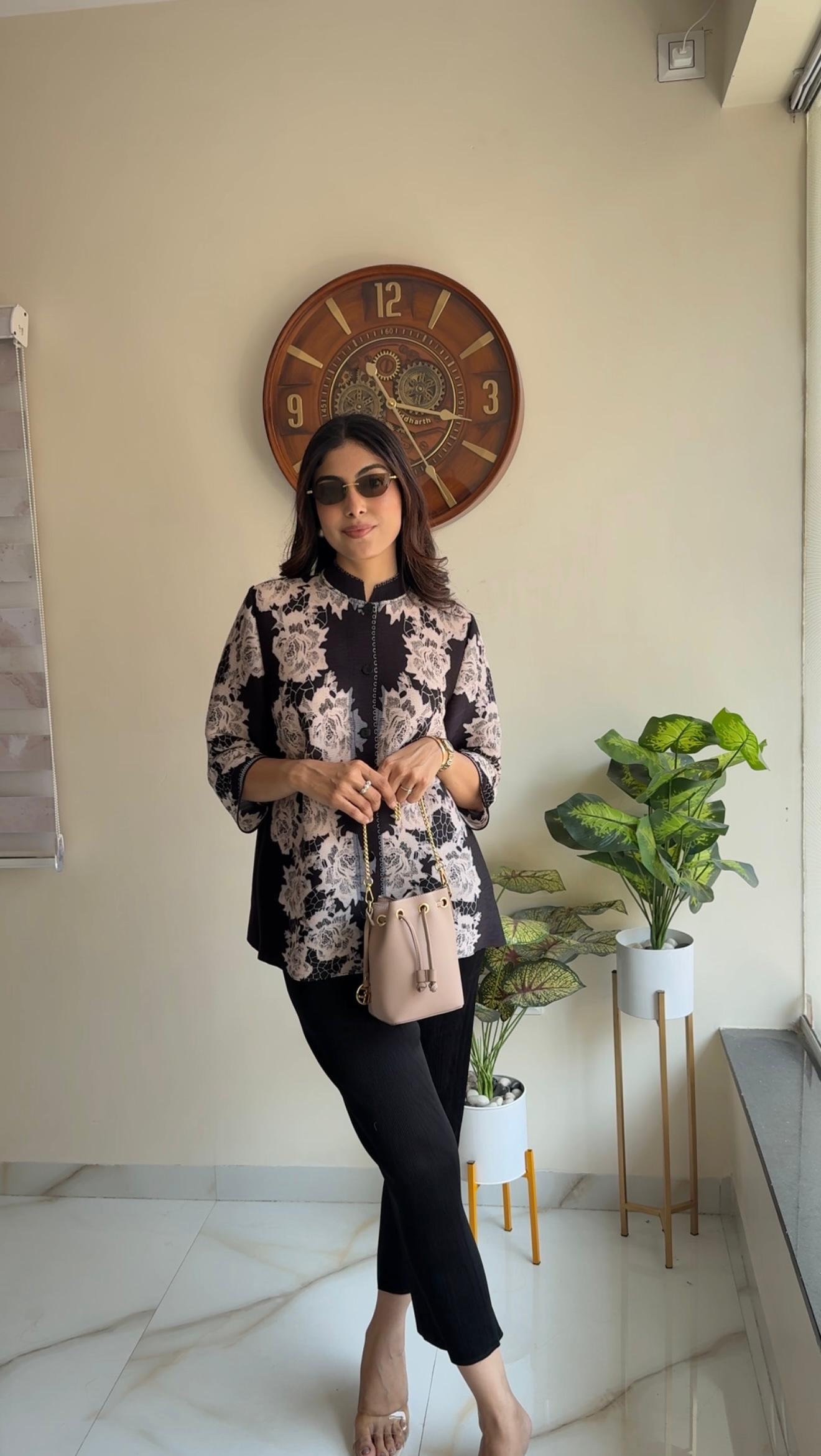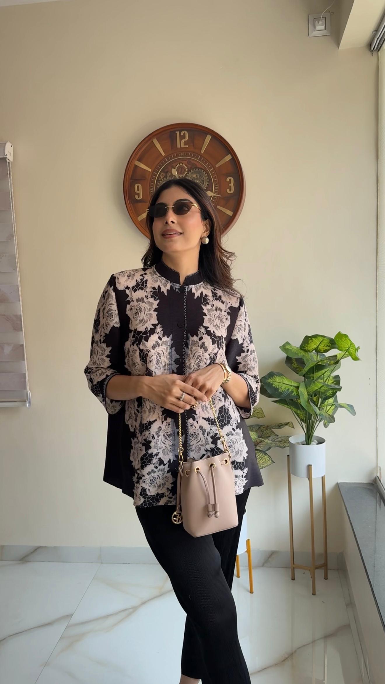 Chic and confident in monochrome florals — ready to turn everyday moments into style statements!”