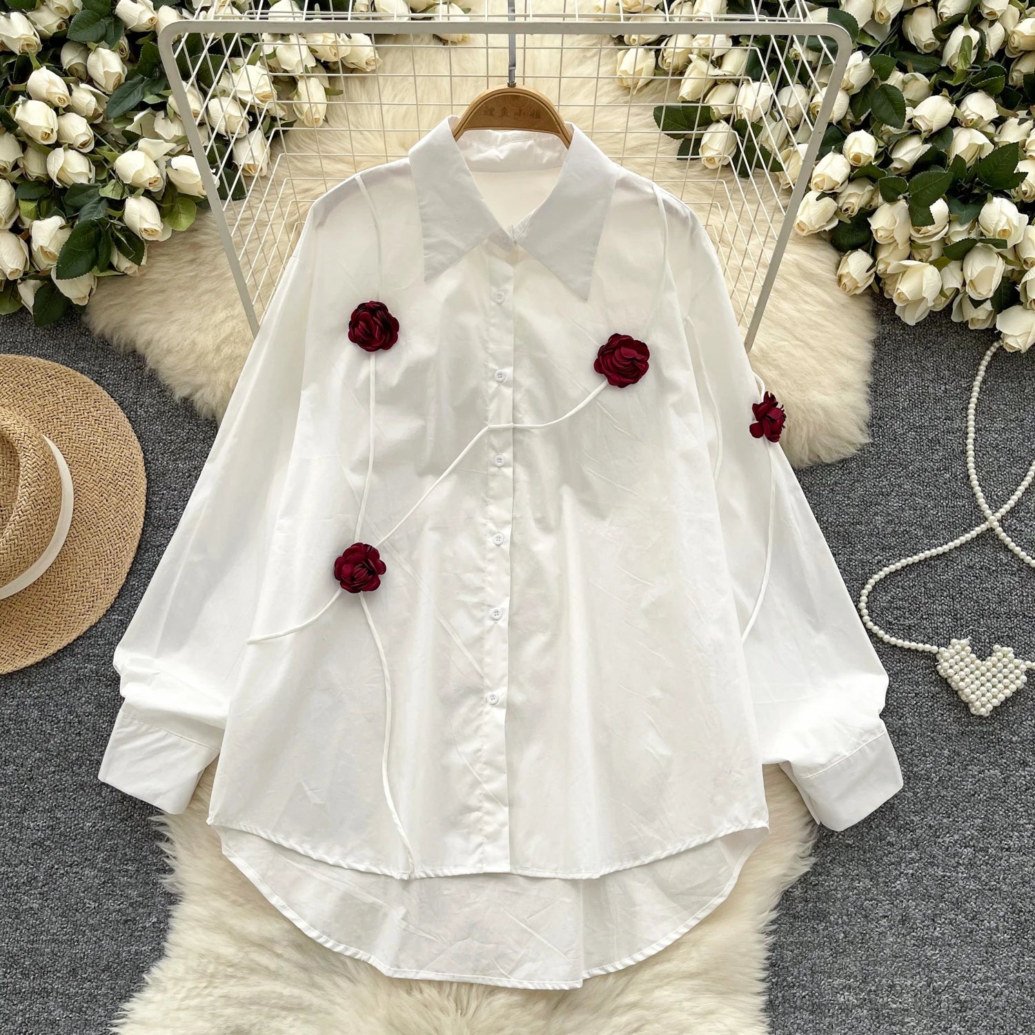 Make a bold yet elegant statement with our Ornate Flo Shirt. Designed in a classic button-down style, this shirt is elevated with handcrafted red rosette embellishments that add a touch of romance and sophistication. The relaxed fit and full sleeves ensure all-day comfort while keeping your look effortlessly chic. Perfect for pairing with tailored trousers, skirts, or denim, this piece blends modern minimalism with a striking floral twist.