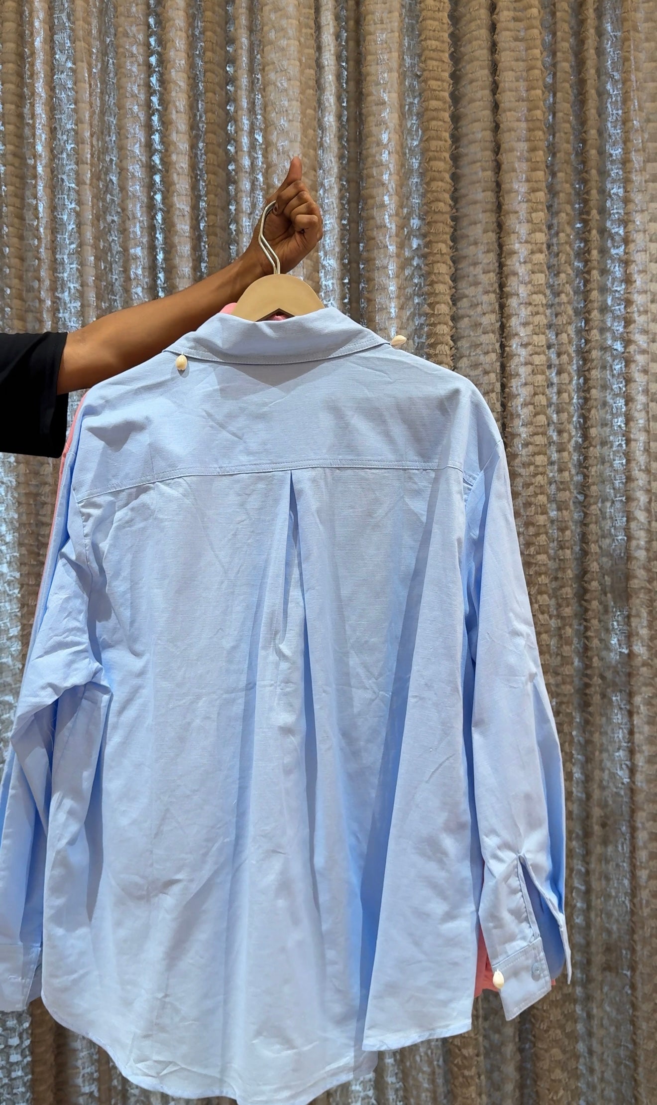 Elevate your wardrobe with this stunning sky-blue designer shirt, meticulously crafted with intricate cream 3D floral appliqué. This statement piece features delicate pearl-like embellishments along the collar, cuffs, and floral motifs, creating an elegant, artistic look. The shirt’s relaxed fit and premium fabric ensure comfort without compromising on style – ideal for chic daywear or standout evening outfits.